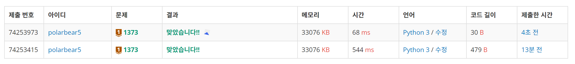 나의 코드와 시간차이는 다음과 같다