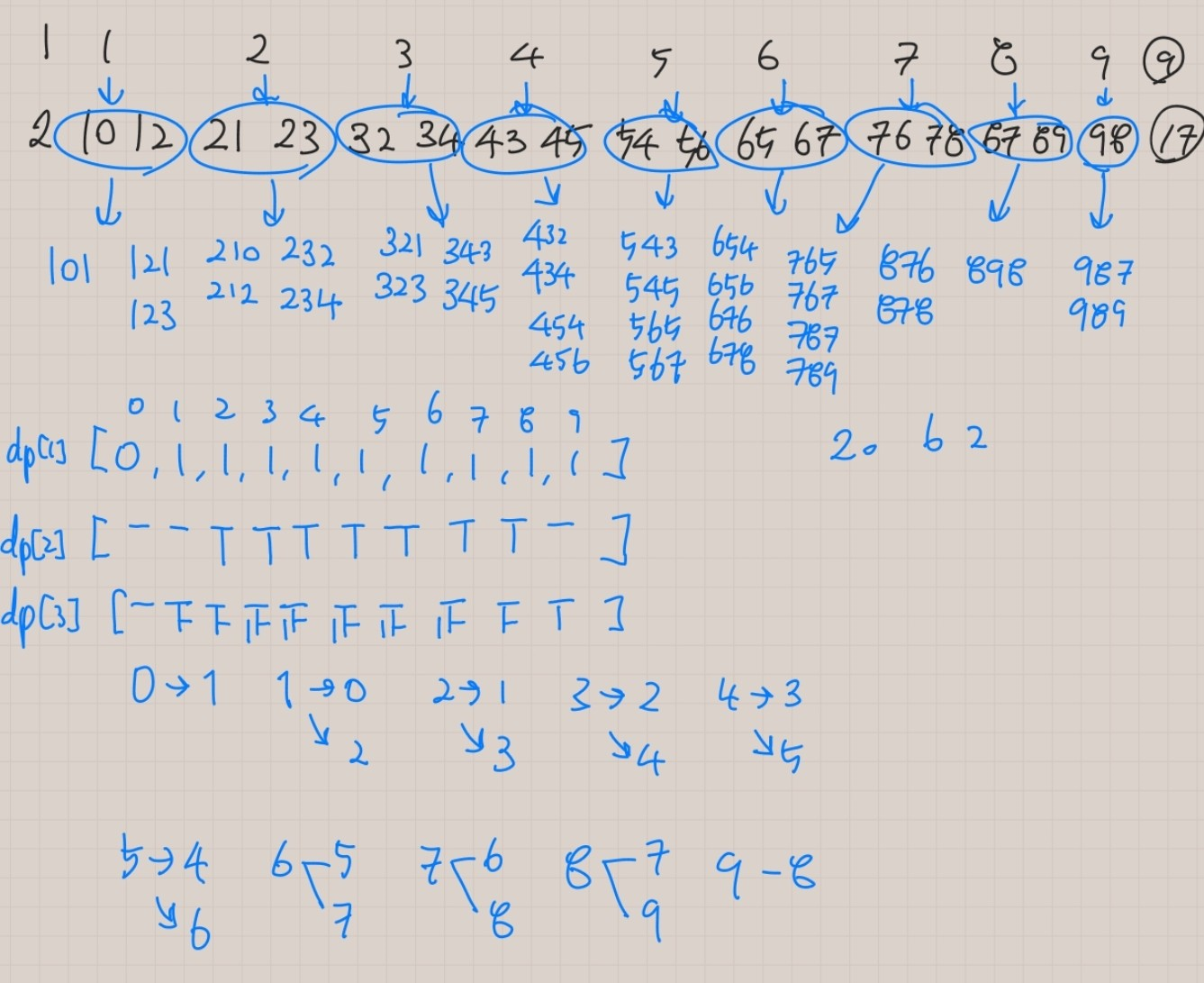 나의 아이디어는 끝나는 숫자별로 뒤에 올 수 있는 숫자가 한정되어 있어