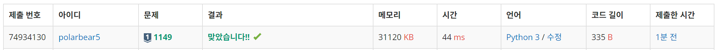 | [알고리즘][백준] 15988번 1, 2, 3 더하기 3 - 파이썬(python) 풀이 (1) | 2024.03.11 |