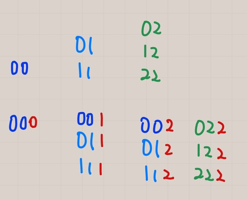 2차원으로 마지막 수가 0~9에 따라 뒤에 올 수 있는 수가 다르기 때문에 위와 같은 점화식을 도입했다
