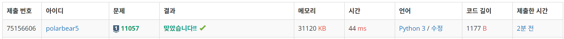 | [알고리즘][백준] 15988번 1, 2, 3 더하기 3 - 파이썬(python) 풀이 (1) | 2024.03.11 |